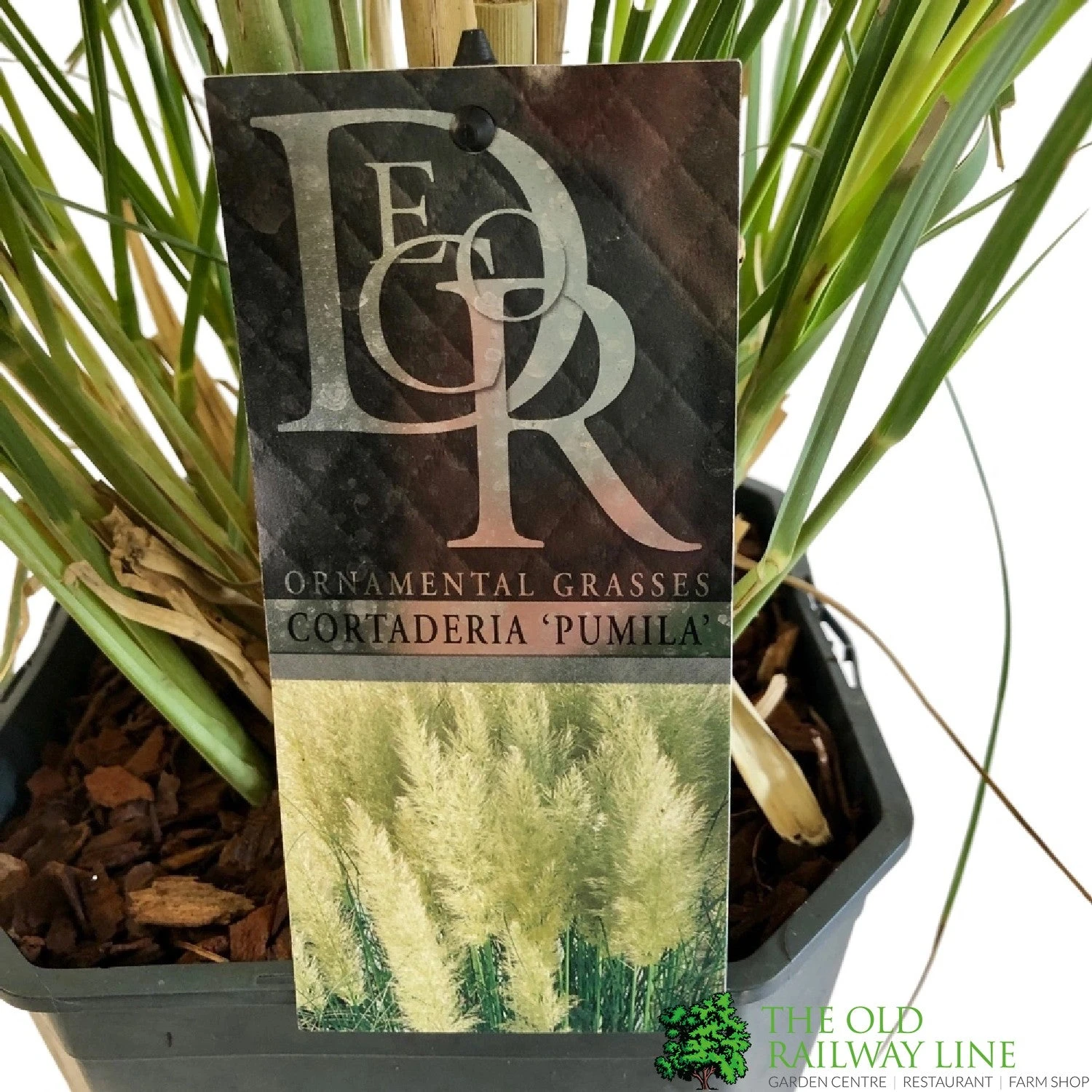 Cortaderia ‘Pumila’ is a perennial and evergreen grass renowned for its distinctive characteristics. This ornamental grass assumes a compact form, with its slender, arching dark green leaves extending up to 45cm in length. During the late summer, it graces its surroundings with an abundance of silky creamy-white plumes. These elegant plumes, which reach heights of 1.2 meters, serve as eye-catching ornamental features and are also suitable for cutting and drying for use in flower arrangements. Alternatively, they can be left in the garden, where they acquire an enchanting frosty appearance in the winter months.